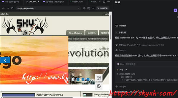 2.下载并安装 Trae CN,并在本地电脑通过Trae CN打开需要调整的网站theme文件,直接在交互界面输入升级PHP代码支持PHP8.2即可