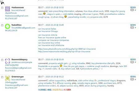 1. 我的也是一样啊,现在都1600+的垃圾评论了,都来自同一号段IP,米国的173.44.37.***。他就是锁定我一篇文章来发,天天来,我烦死了。我都设定了评论必须注册并登陆才可用,但是好像没效果啊~怎么办啊?:sad: