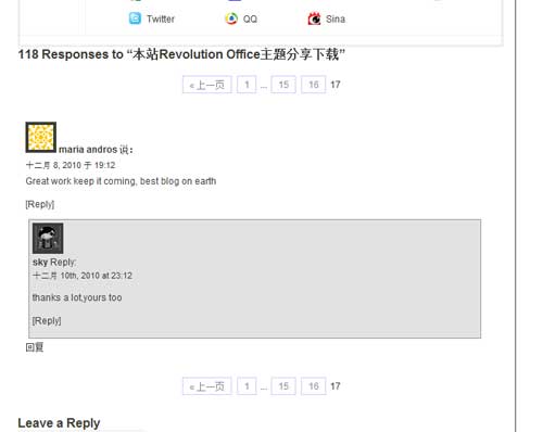 通过以上两步大多数的主题都是可以实现了评论分页功能的,但是有些主题还是不能显示,有的主题并不支持这个comment-list函数,这个时候就要多一步操作了的,我的这个revolution office就不支持这样的方法,需要多一步的操作如下: